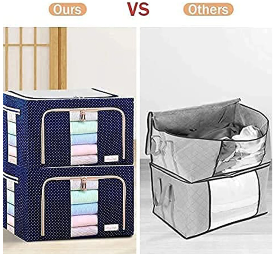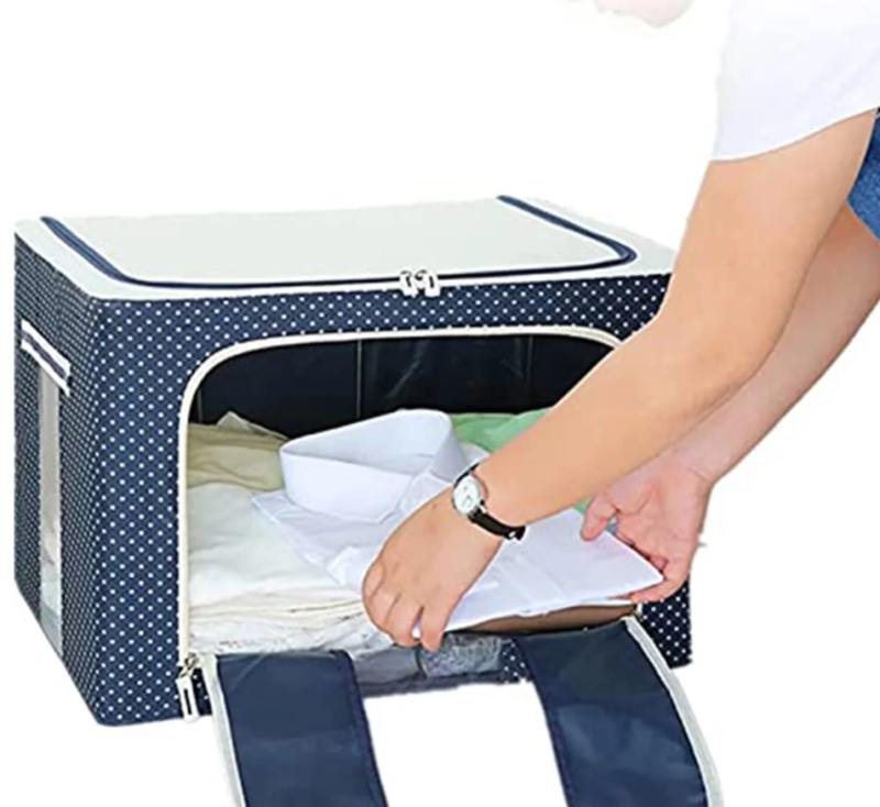 Foldable Steel Frame Clothes Living Storage Organizer Handled Bag Box for Large Size Bedding, Blankets, Women Saree, Toys & Cloth Storage Box / Bag (66 Liter)