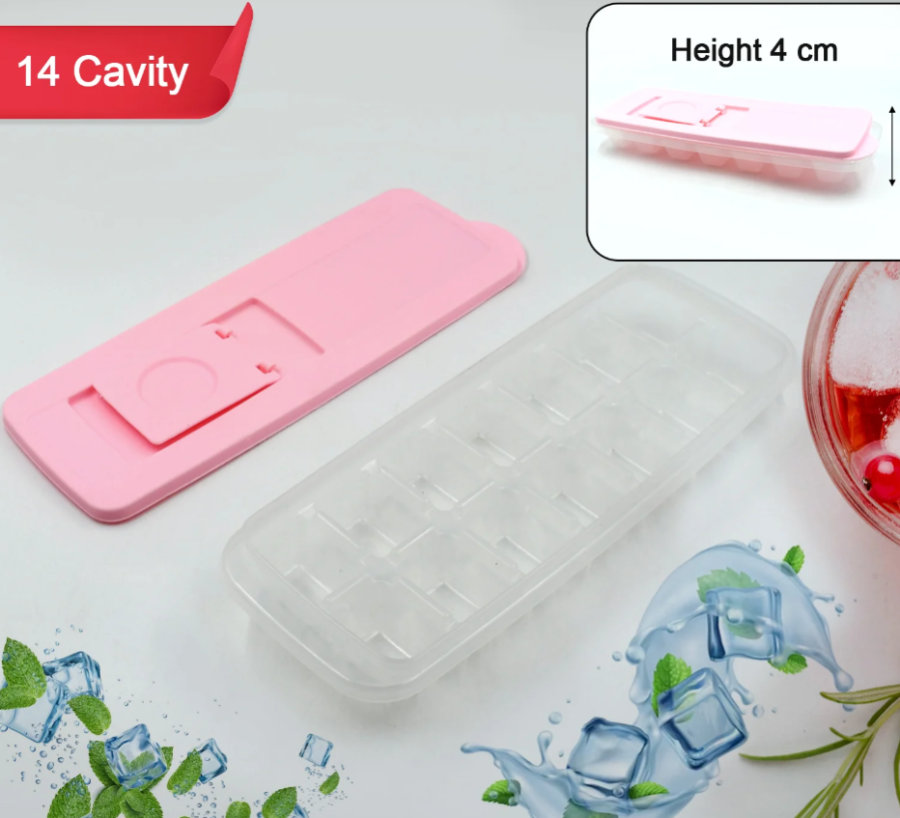 ICE CUBE TRAYS FLEXIBLE SILICONE ICE CUBE TRAY MOLDS WITH LIDS, MAKE 14 ICE CUBE
