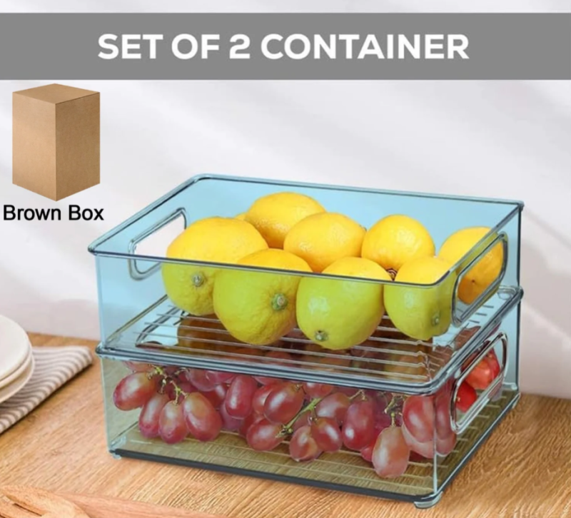 STACKABLE PLASTIC REFRIGERATOR ORGANIZER SET OF 2